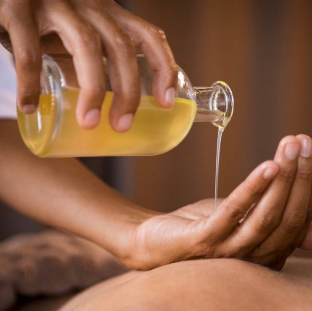 - Hot body oil and hot towels